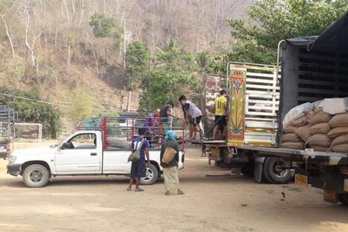 태국 국경지역 소수민족 이야기를 주로 보도하는 현지 매체는 지난 20일 미얀마와 접경 지역인 매홍손에서 쌀 포대로 보이는 물건들이 트럭에 실리는 사진을 실었다.