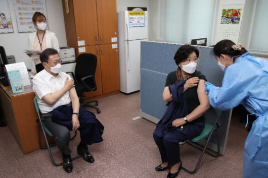 앞서 문 대통령과 김정숙 여사는 이날 오전 9시 서울시 종로구 보건소를 방문해 AZ백신으로 코로나19 예방접종 받았다.