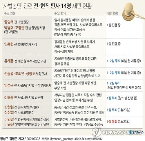 한편 양승태 전 대법원장과 박병대·고영한 전 법원행정처장(대법관)의 재판, 임종헌 전 법원행정처 차장의 재판 등은 아직도 1심이 진행 중이다.