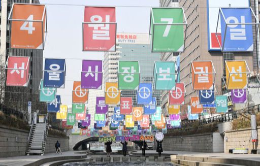 “4·7 서울시장 보선 한표 행사하세요” 4·7 재보궐선거를 앞두고 23일 서울시 선거관리위원회 관계자들이 청계천 모전교∼광통교 구간에 설치된 선거 관련 조형물을 배경으로 투표 독려 퍼포먼스를 선보이고 있다. 남정탁 기자 |