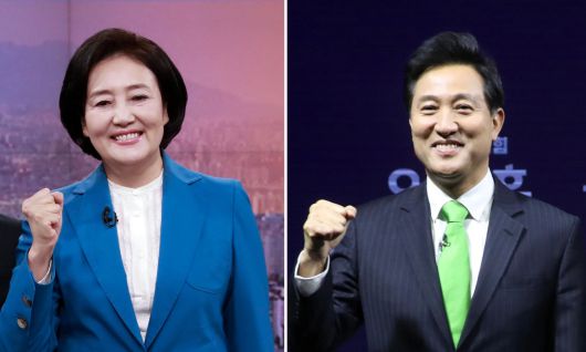 박 후보와 오 후보의 지지율 추세는 유권자들의 서울시장 선거에 대한 인식 변화와 비슷하다. 2월 초 코리아리서치·MBC 조사에선 ‘국정 안정을 위해 여당이 당선돼야 한다’와 ‘국정 심판을 위해 야당이 당선돼야 한다’가 44.1% 대 46.1%로 거의 차이가 없었다. 하지만 3월 20~21일 코리아리서치·지상파 3사 조사에선 32.7% 대 59.3%로 국정 심판론이 국정 안정론을 26.6%포인트나 앞섰다(각 조사는 중앙선거여론조사심의위원회 참고).