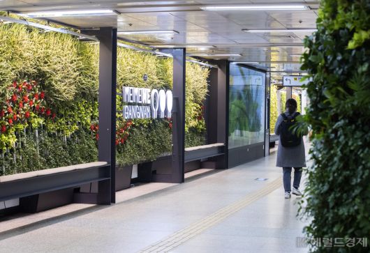 청담역 미세먼지 프리존 650m 보행구간이 공기정화식물로 꾸며져 있다. [강남구 제공] |
