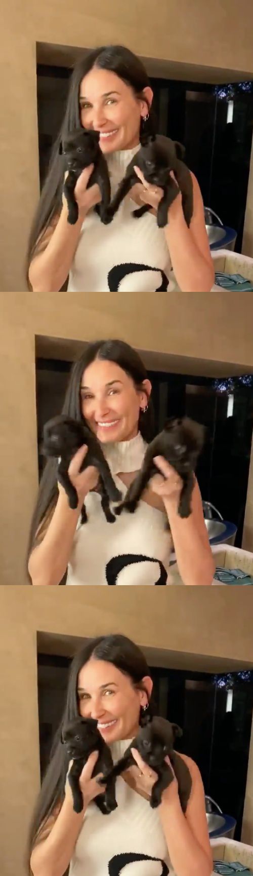 데미 무어는 23일(현지시간) 자신의 SNS에 강아지들과 함께한 사랑스러운 영상을 게재했다. 영상 속 데미 무어는 양손에 강아지들을 들고 포즈를 취하고 있다. 상큼한 눈웃음과 해맑은 표정이 돋보인다.