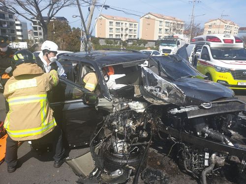 지난 3일 낮 12시 25분께 제주시 오광로에서 D(24)씨가 몰던 코란도 승용차가 전신주를 들이받았다.