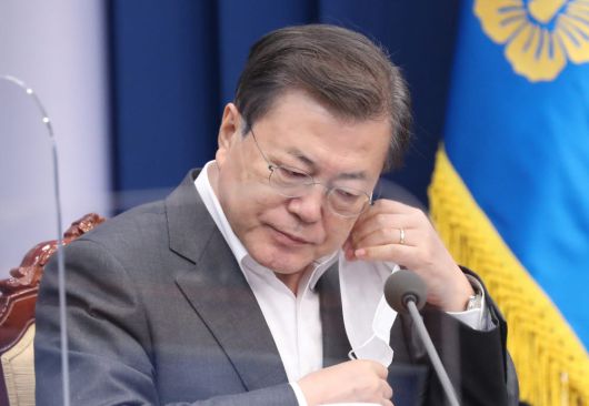문 대통령은 24일 공개일정 없이 청와대에서 현안 업무를 챙긴 것으로 알려졌다. 문 대통령은 전날 아스트라제네카(AZ) 백신을 접종한 뒤에도 휴식 없이 곧바로 청와대로 복귀해 현안을 챙겼다. 지난 22일 리얼미터와 YTN 공동 여론조사 결과에서 34.1%로 취임 후 최저치를 기록하면서 현안 대응이 시급했기 때문으로 풀이된다. 청와대 고위관계자는 “현 상황을 엄중하게 인식하고 있다”고 전했다.