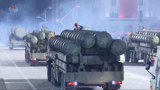 북한 열병식에 등장한 지대공유도미사일 'KN-06' (서울=연합뉴스) 북한 조선중앙TV가 10일 녹화 방송한 노동당 창건 75주년 기념 열병식에 등장한 북한판 패트리엇으로 불리는 지대공유도미사일 'KN-06'(번개 5호)의 모습. 전문가들은 기존보다 KN-06의 이동식발사차량(TEL)이 개량된 것으로 추정했다. [조선중앙TV 화면] 2020.10.11 [국내에서만 사용가능. 재배포 금지. For Use Only in the Republic of Korea. No Redistribution] nkphoto@yna.co.kr/2020-10-11 00:44:22/ <저작권자 ⓒ 1980-2020 ㈜연합뉴스. 무단 전재 재배포 금지.> |