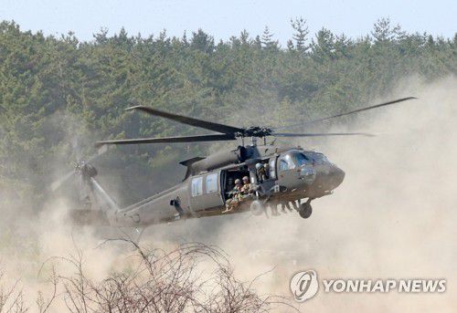 (포항=연합뉴스) 손대성 기자 = 25일 경북 포항시 북구 송라면 해안에서 전개된 한 전술훈련에서 미군 헬기가 착륙하고 있다. 2021.3.25 sds123@yna.co.kr
