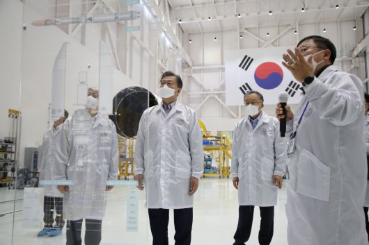 청와대에 따르면 문 대통령은 이날 나로우주센터의 발사통제동을 방문해 나로우주센터 개요와 발사체 개발 현황에 대한 보고를 받았다. 또 누리호 1단부의 종합연소시험을 직접 참관했다.