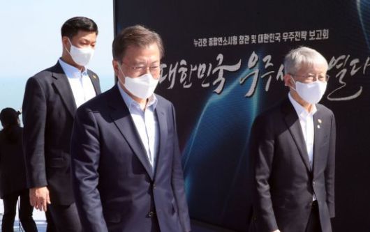 문 대통령은 "‘스페이스 엑스’와 같은 글로벌 우주기업이 우리나라에서도 생겨날 수 있도록 혁신적인 산업 생태계를 조성할 것"이라며 "정부는 국가우주위원회 위원장을 국무총리로 격상할 것이다. 민·관의 역량을 더욱 긴밀히 결집하고, ‘세계 7대 우주 강국’으로 확실하게 도약하겠다"고 말했다.