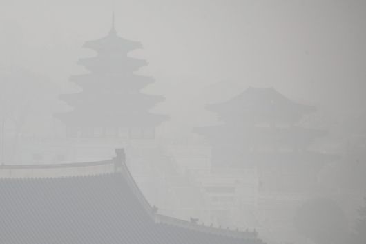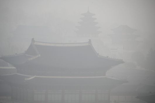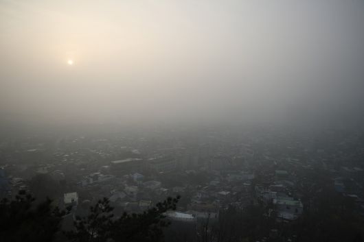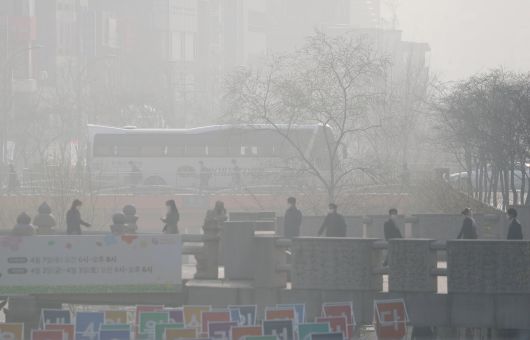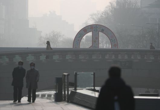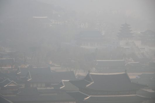 26일 오전 10시 서울의 초미세먼지 시간 평균 농도는 95㎍/㎥로 '매우 나쁨' 수준을 보였다. 이날 초미세먼지 농도는 한때 115㎍/㎥까지 치솟았다. 미세먼지 농도도 '나쁨' 수준이었다. 경복궁과 청계천 일대는 뿌옇게 보였고 한강 건너편의 건물은 형체만 알아볼 수 있을 정도였다. 주말인 27일 미세먼지 농도는 대기 확산과 강수 등의 영향으로 전국적으로 '보통'이나 '좋음' 수준을 보일 것으로 예보됐다. 다만 수도권, 충청, 대구 등은 오전 중 '나쁨' 수준으로 농도가 오를 전망이다. 김경록 기자, 사진 연합뉴스·뉴스1·뉴시스