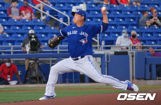 류현진은 27일(이하 한국시간) 미국 플로리다주 더니든 TD볼파크에서 열린 2021 메이저리그 필라델피아 필리스와의 시범경기에 선발등판, 4이닝 8피안타(1피홈런) 1볼넷 1사구 5탈삼진 3실점을 기록했다.