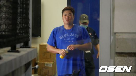 [OSEN=더니든(미 플로리다주), 이사부 통신원] 토론토의 류현진이 27일(한국시간) 플로리다주 더니든의 TD 볼파크에서 벌어진 필라델피아와의 시범경기를 마친 뒤 화상 인터뷰를 위해 인터뷰룸으로 들어서고 있다. /lsboo@osen.co.kr |