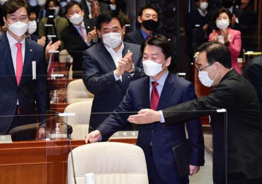 안철수 국민의당 대표가 24일 '빨간 넥타이'를 매고 국민의힘 의원총회에 등장했다. 오세훈 국민의힘 서울시장 후보와 야권 단일화 경선을 하면서 입당·합당을 거부했던 그였다. 하지만 전날 오 후보가 야권 단일 후보로 선출되자, 안 대표는 하루 만에 보수의 상징인 빨간 넥타이를 두르고 모습을 드러낸 것이다.