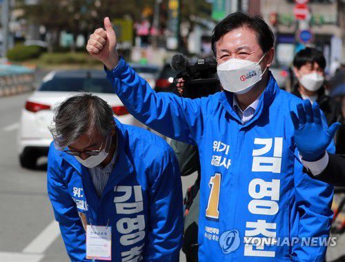 부산 구포시장서 집중유세 펼치는 김영춘 |
