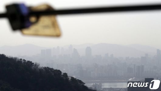 중부지방을 중심으로 중국발 황사가 관측된 지난 17일 오전 서울 중구 남산에서 바라본 서울 도심이 뿌옇게 보이고 있다. /사진=뉴스1 |