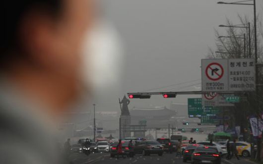 중국발 황사로 최악의 대기질을 보인 29일 오전, 서울 종로구 광화문 인근 일대가 뿌옇다. 뉴스1 |