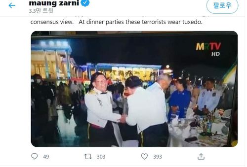 소셜미디어에 올라온 사진을 보면 흘라잉 사령관 등 군부 인사들은 흰색 제복에 나비 넥타이를 매고 웃음을 머금은 채 레드 카펫 위를 걸어 다녔다.
