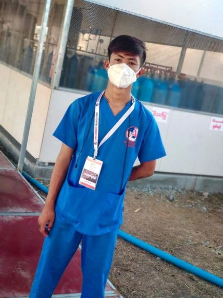 코로나19 팬데믹(세계적 대유행)이 덜친 미얀마 만달레이의 응급실에서 의료 봉사를 할 정도로 사회에 관심이 많았던 아웅 진 피오(19)는 지난 27일 군부 쿠데타에 항의하는 시위대의 맨앞에 서 있다가 흉탄에 스러졌다.만달레이 로이터 연합뉴스 |