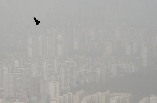 29일 오전 경기도 광주시 남한산성에서 바라본 서울 도심이 뿌옇게 보이고 있다. 이날 강원 일부지역을 제외한 전국에 황사경보가 내려졌다. 뉴스1 |