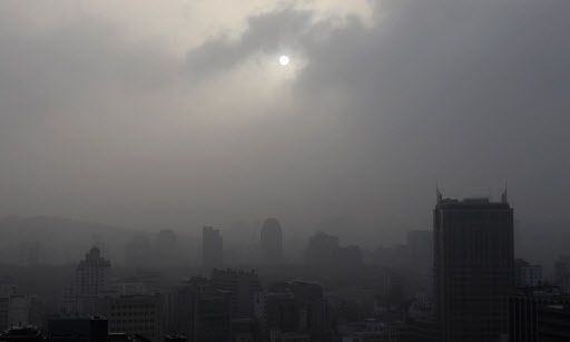 29일 서울 시내 도심이 뿌옇게 변해 태양이 빛을 잃고 있다.