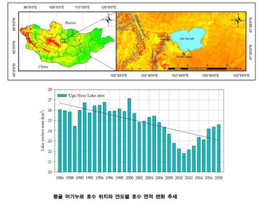 한편, 몽골 국립대와 중국·에티오피아 연구팀은 지난해 5월 국제 저널 '워터(Water)'에 발표한 논문에서 몽골 중부 오르콘 강 유역의 호수 어기누르(Ugii Nuur) 면적이 지구온난화로 인해 1986~2018년 사이 13% 이상 줄었다고 밝혔다.