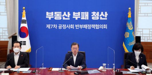 ▶"정치적 유불리 따지지 말고, 탈세부터 금융대출까지 추적"=문 대통령은 공직자들의 부동산 투기와 관련해 "드러난 범법행위에 대해서는 단호히 처벌하고, 부당이익을 철저하게 환수해야 할 것"이라며 "차명 거래와 탈세, 불법 자금, 투기와 결합된 부당 금융대출까지 끝까지 추적해주기 바란다"고 했다.