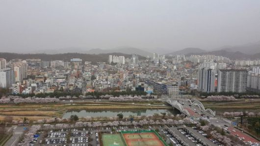 전북 전역에 올해 들어 처음으로 미세먼지(PM10) 경보와 초미세먼지(PM2.5) 주의보와 내려진 29일 전주 중화산동 일대가 뿌연 먼지로 뒤덮여 있다. 전주=김동욱 기자 |