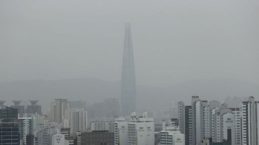 서울 전역에 황사 경보가 내려진 29일 서울 성동구 응봉산에서 바라본 송파구 롯데월드타워 주변으로 미세먼지가 드리워져 있다. 연합뉴스 |