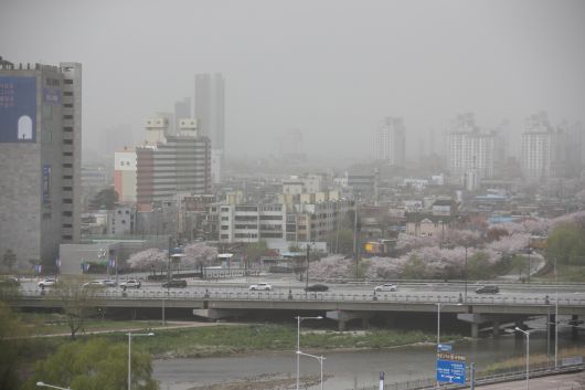 몽골·중국발 황사가 덮친 29일 오후 광주광역시 도심이 고농도의 미세먼지·초미세먼지로 뿌옇다. [연합] |