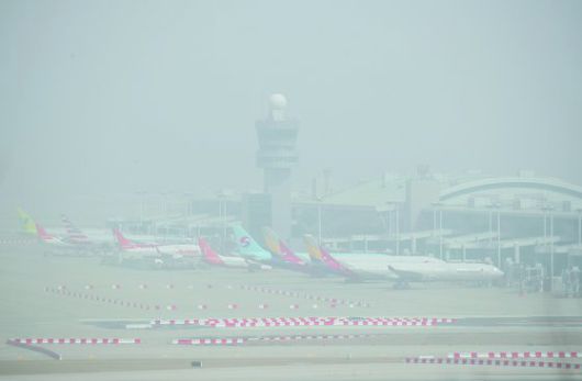 올해 최악의 황사가 한반도를 강타한 29일 영종도 인천국제공항이 온통 희뿌옇게 보인다. 연합뉴스 |