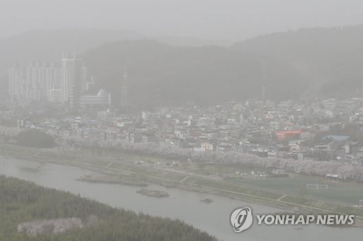 울산에 황사 경보가 발효된 29일 오후 중구 주택가 일대가 뿌옇게 보이고 있다.[사진 출처 = 연합뉴스] |