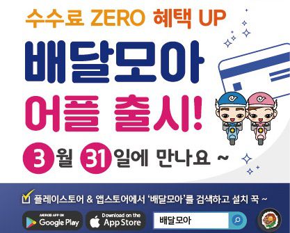 가맹점 문의는 배달모아 고객센터(☎043-643-0771)로 하면 된다.