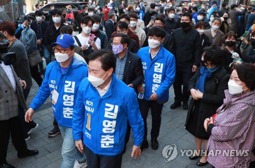 (부산=연합뉴스) 김재홍 기자 = 김영춘 더불어민주당 부산시장 후보가 30일 신종 코로나바이러스 감염증(코로나19) 대책으로 나온 재난지원금을 야당에서 부채 문제로 지적하는 것을 비판했다.