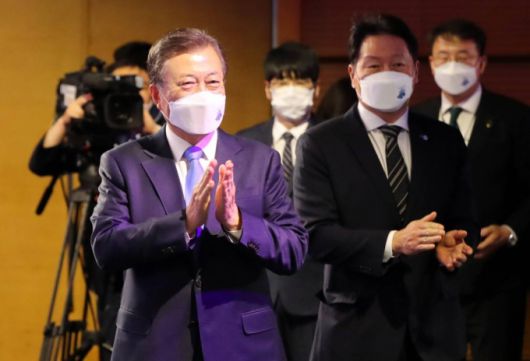 문 대통령은 또 "전체 상공인들이 생산과 수출을 통해 이 어려운 시기를 잘 극복하고 빠르게 회복하고 있어 감사드린다고"고 강조했다.