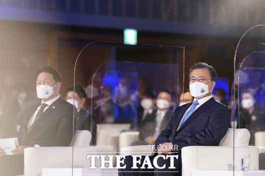 이와 함께 문 대통령은 "4대 그룹 회장의 대한상의 회장 취임은 처음이라 뜻깊다"면서 "SK그룹은 불화수소 국산화를 통한 소재자립과 아스트라제네카 코로나19 백신 생산으로 환란 극복에 기여하고 있다"고 감사의 뜻을 전하기도 했다.