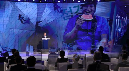 문 대통령은 "박용만 전 회장 시절 규제 샌드박스 등을 통해 규제를 많이 완화하는 성과를 거뒀는데 그 부분을 더욱더 가속 확대하라"고 주문했다. 그러면서 "(대한)상의를 통해서 수집되는 기업들 의견을 정부는 최우선적으로 정례적으로 협의해서 함께 해법 모색해나갈 것"이라고 말했다.