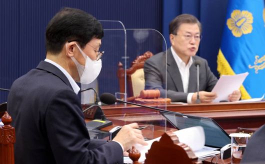 [서울=뉴시스]추상철 기자 =이호승 정책실장이 30일 오전 청와대 여민관에서 열린 제14회 국무회의에 참석해 문재인 대통령의 발언을 듣고 있다. 2021.03.30. scchoo@newsis.com |