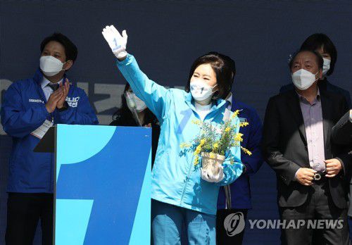 꽃을 든 민주당 박영선 서울시장 후보 |