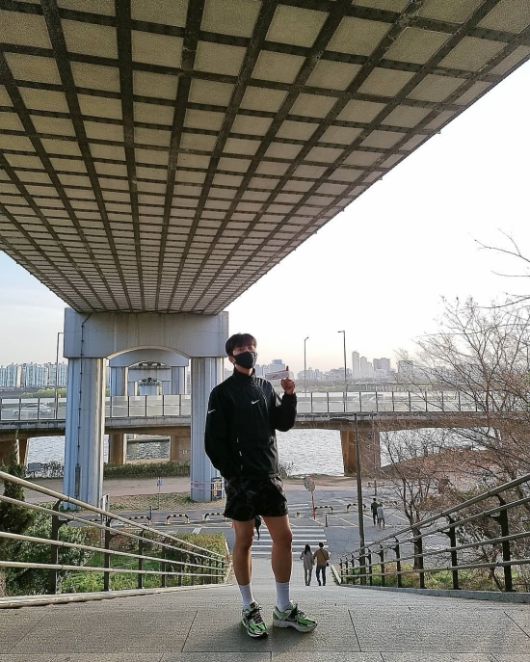 사진 속 임영웅은 모처의 강변에서 일상을 즐기고 있다.