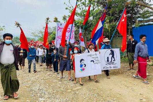 군부 쿠데타 규탄 시위하는 미얀마 카친족 (파칸 AFP=연합뉴스) 31일(현지시간) 미얀마 북부 카친주 파칸의 주민들이 군부 쿠데타 규탄 시위를 벌이고 있다. 쿠데타 항의 시위대에 대한 군부의 유혈진압이 계속되는 가운데 미얀마 민주진영은 4월 1일 군정에 맞서 소수민족 무장조직이 참여하는 국민통합정부 출범을 선언하고 소수민족 권익 보장 등을 담은 과도헌법을 선포했다. [카친 웨이브 제공] knhknh@yna.co.kr/2021-04-01 16:28:48/ <저작권자 ⓒ 1980-2021 ㈜연합뉴스. 무단 전재 재배포 금지.> |