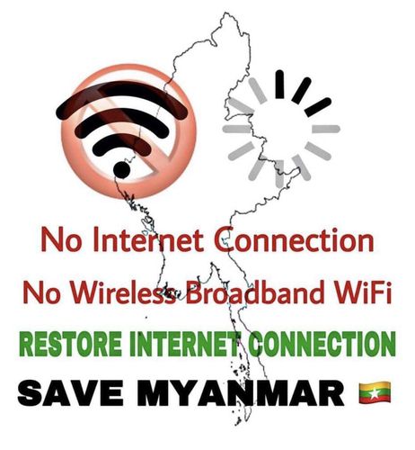 군부의 인터넷 차단 조치를 비판하는 포스터. |