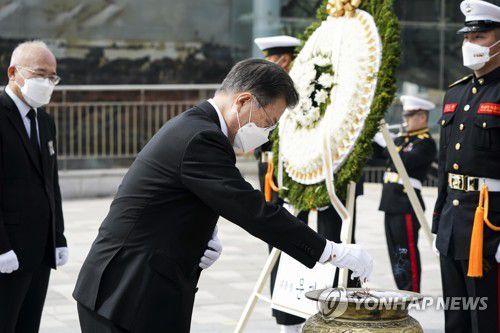 천안함 46용사 추모비 참배하는 문 대통령 |