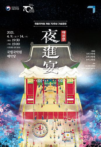 (서울=연합뉴스) 성도현 기자 = ▲ 국립국악원 개원 70주년 기념 공연 '야진연' = 국립국악원이 오는 9~14일 서울 서초구 국립국악원 예악당에서 개원 70주년 기념 공연 '야진연'을 선보인다.