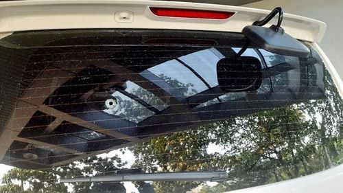 신한은행 현지직원이 타고 가던 출퇴근용 차량. 유리창에 총탄 구멍이 나 있다. |
