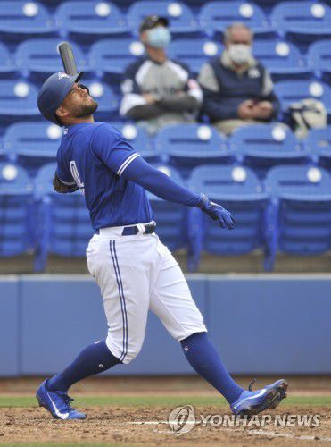 (서울=연합뉴스) 김경윤 기자 = 정규시즌 개막을 앞두고 복사근 부상으로 부상자 명단(IL)에 올랐던 토론토 블루제이스의 슈퍼스타 외야수 조지 스프링어(31)가 이르면 다음 주 복귀한다.