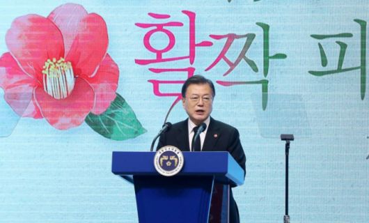 문 대통령은 "이번 4·3 특별법의 개정 역시 4·3을 역사의 제자리에 바로 세우기 위해 모든 산 자들이 서로 손을 잡았기에 할 수 있었다"라며 "국회도 여야 없이 힘을 모았다. 4·3 특별법 개정이 여야 합의로 이뤄진 것은 21대 국회의 가장 큰 성과 중 하나로 평가받게 될 것"이라고 했다.