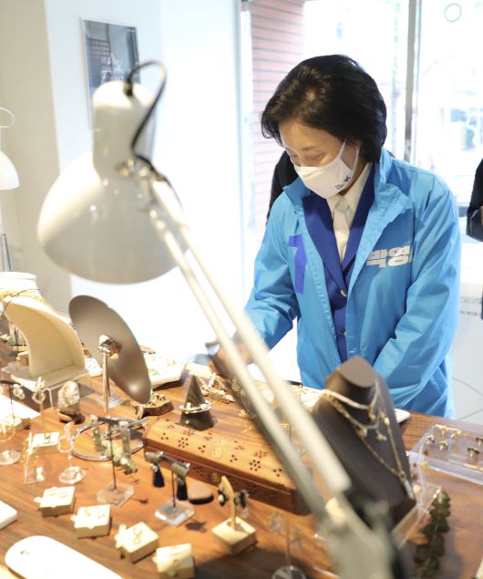 더불어민주당 박영선 서울시장 후보가 3일 종로3가역 5번출구에서 지하철을 타고 다음 유세 장소로 향하기 전 기자들과 만났다. 박 후보는 이날 오전 청년주택 '안암생활'을 둘러보고 사회적경제 청년 기업가 간담회를 가졌다.