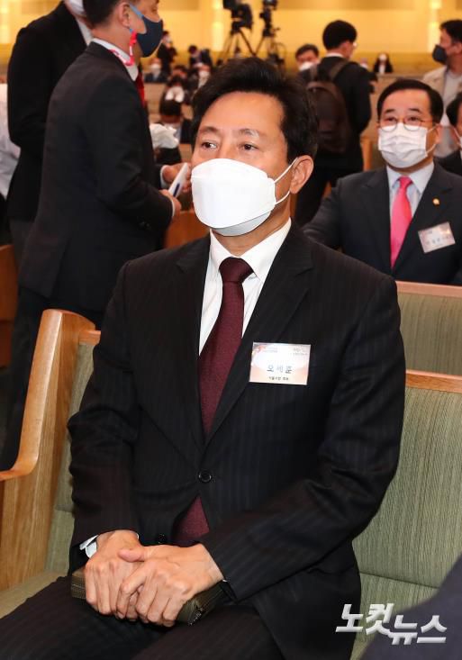 국회사진취재단 4일 서울 서초구 사랑의교회에서 열린 '2021 한국교회 부활절 연합예배'에 국민의힘 오세훈 서울시장 후보가 참석하고 있다.저작권자 © CBS 노컷뉴스 무단전재 및 재배포 금지