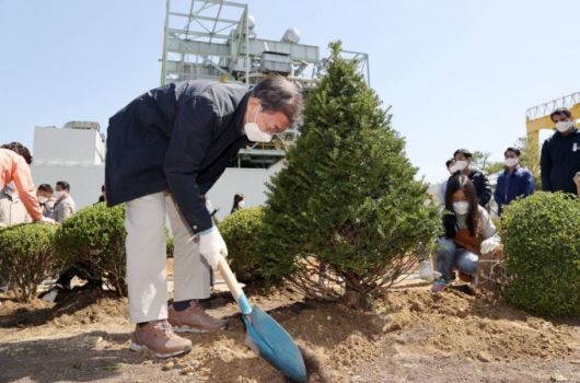 [서울=뉴시스]박영태 기자 = 문재인 대통령이 5일 서울 마포구 서울복합화력발전소에서 열린 제76회 식목일 기념행사에서 나무를 심고 있다. 2021.04.05. since1999@newsis.com |