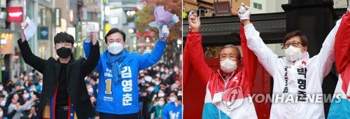 마지막 휴일 집중 유세 나선 부산시장 후보 |